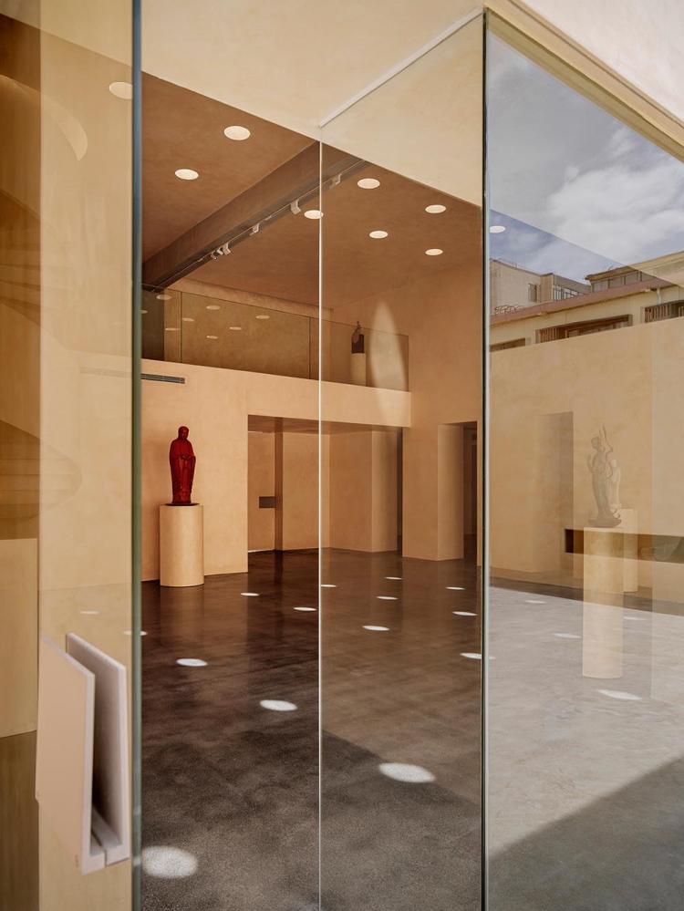 根据“佛的居所”的建筑概念,我们的改造也由内而外展开。首先我们封堵了1、2号楼外立面的窗口,并打通了1号楼的内部墙体,由此得到一个相对整体化的“暗室”,营造出一种向内、封闭的空间氛围。在展厅内部,我们运用大量留白和一体化背景,将部件细节自然隐去,让佛像的自有形态愈加凸显。
