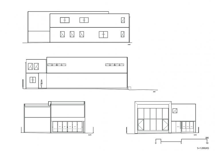 这栋建筑由两个木制的方形建筑简单组合而成,柱子和梁以相等的间隔布置。这些结构不仅支撑着建筑,而且当老师们使用这座建筑作为蒙氏教育培训中心时,这些柱子和梁可以作为长度和宽度的标尺。