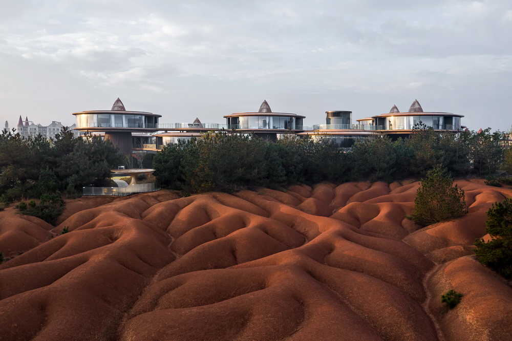 本案规划以场地原有地形、森林为基础,结合北侧红土地质公园,最大化地利用场地条件和自然景观资源,通过不同高度、方向的组合,使各个单元都能拥有景观视野。