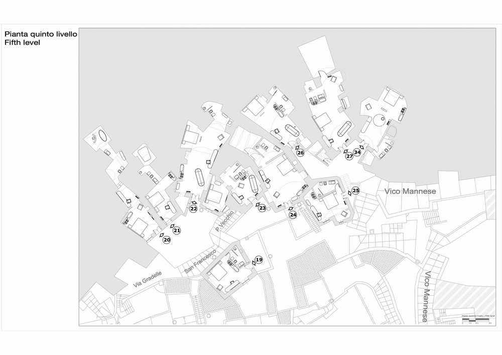 这些空间都位于建筑上部,明亮,便于欣赏风和日丽下卡沃索悬崖和古城的壮丽景色,或是隐匿在地球深处的凹凸洞穴,只有一扇门彰显了它作为新石器时代在Murgia定居的上古庇护所定位。