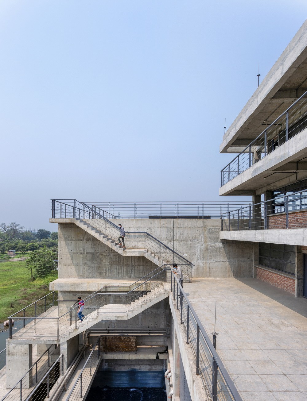 旧工业导致了该地区地下水极度枯竭,不受管控的污水排放也造成的河流的污染。在人们的传统观念中,污水处理过程带来的是视觉和嗅觉上的不适,所以污水处理厂是不美观的建筑。因此,业主最初的意图是把污水厂置于河边,并尽可能把它隐藏起来。
