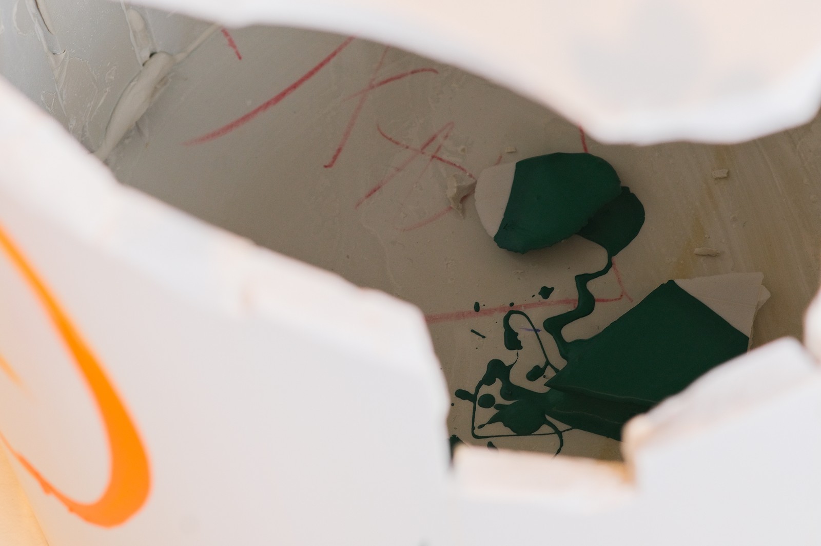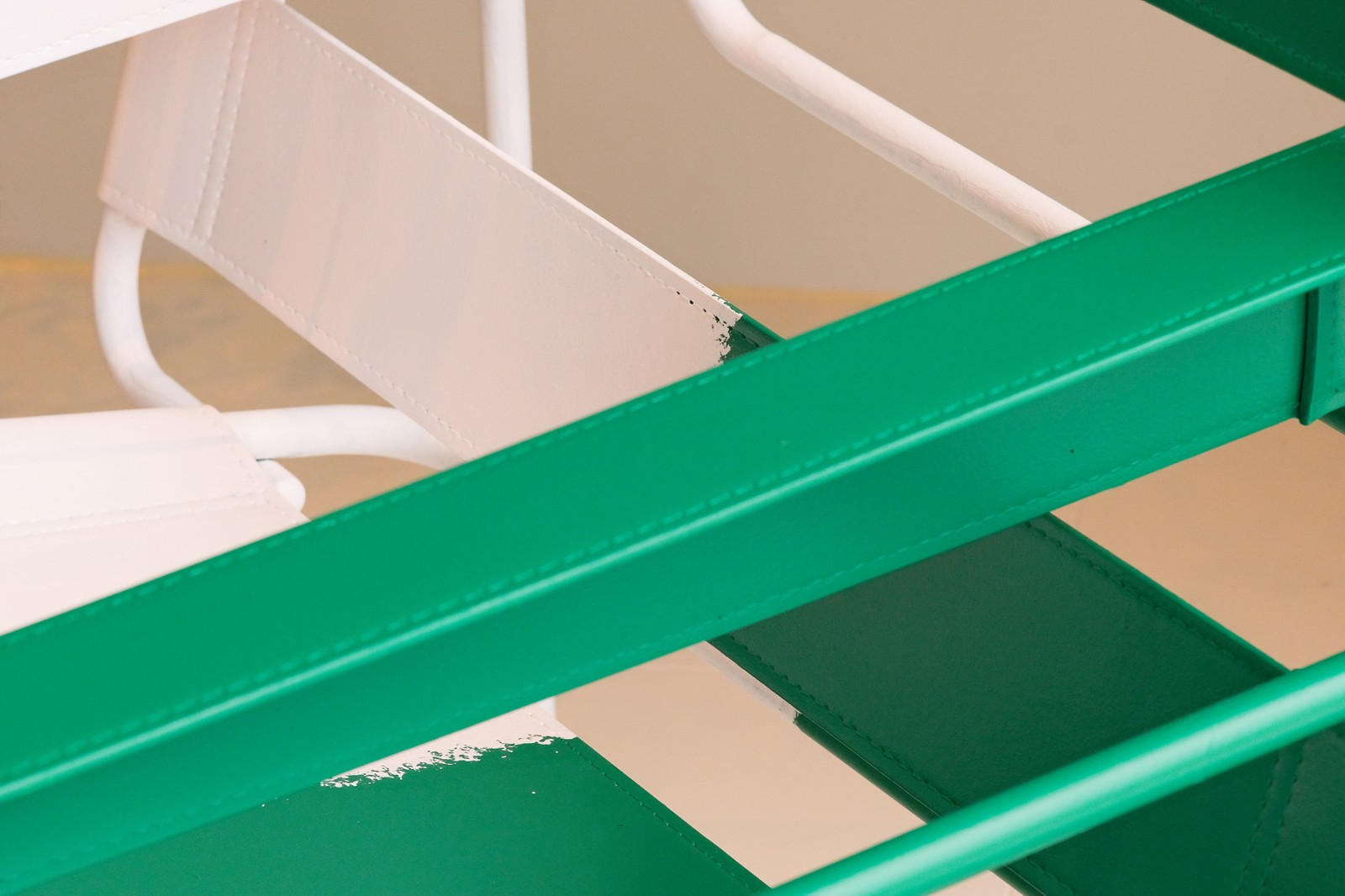 瑜伽球、鞋子、老板凳、雨衣、瓷砖…从随机拾取再到涂料加工,承载不同生活需求的物品此时爆发出色彩的自由形态。