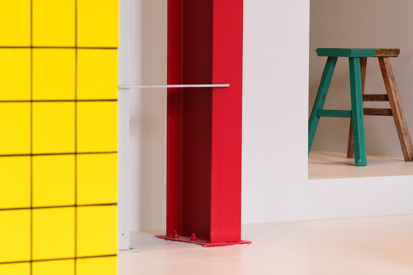 涂料加工现场使用的钨丝灯泡,瓷砖改色结束需要撕掉的美纹纸,因尺寸过长而凿掉的弧形墙面,跟随设计发展介入空间的物体相互调和,原本被结果掩埋的过程得到即兴保留,人们可以直观地感受在空间里演绎的事件。