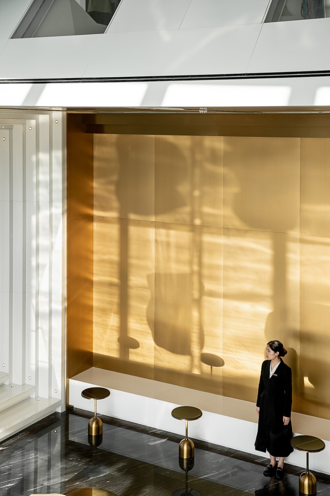 首度发布的品牌IP——“浮娃”悬坐在接待台上方,电梯开启的第一瞬间,即与旅客交流,原创订制的动态光环赋予了初次相遇满满的仪式感。