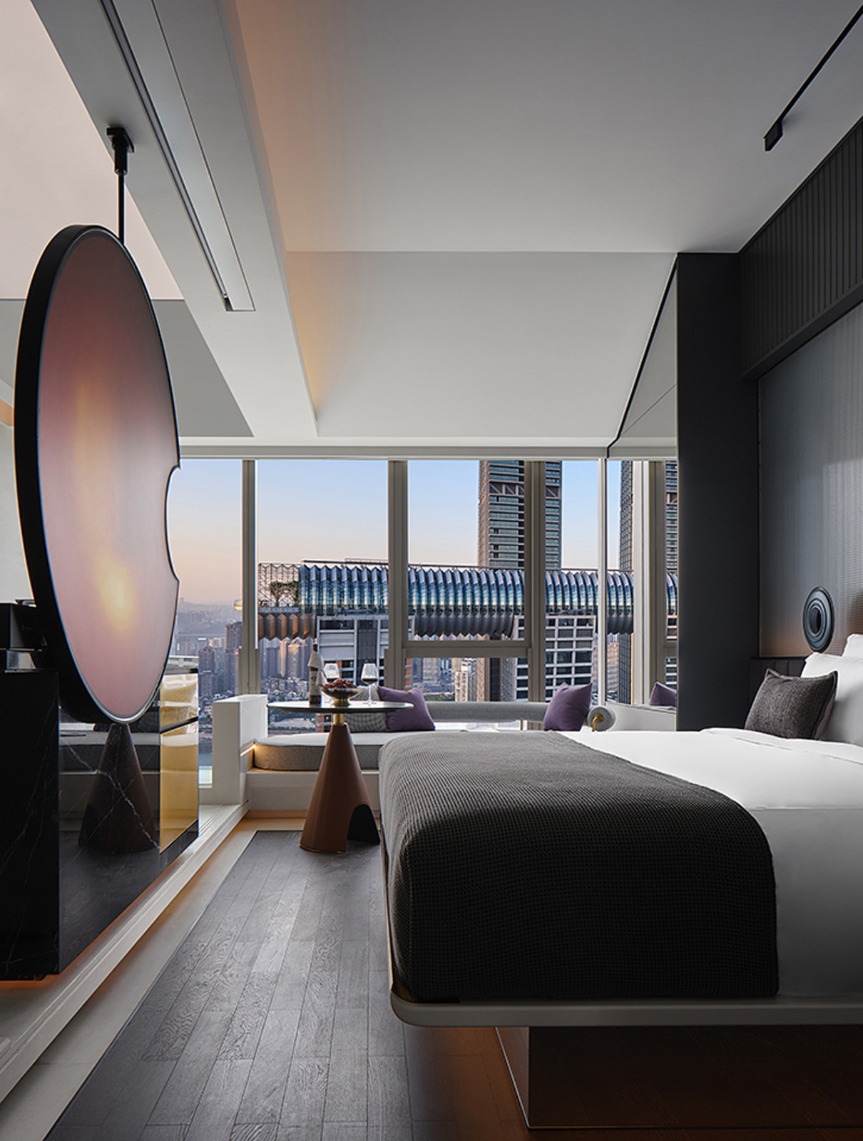 身居朝天门百米高空,每间客房都备足了惊喜:渝中半岛、两江交汇、隔空相望的来福士水晶横廊以及隔江相望的绵延南山,浮云流雾、朝阳落日,都是你的!