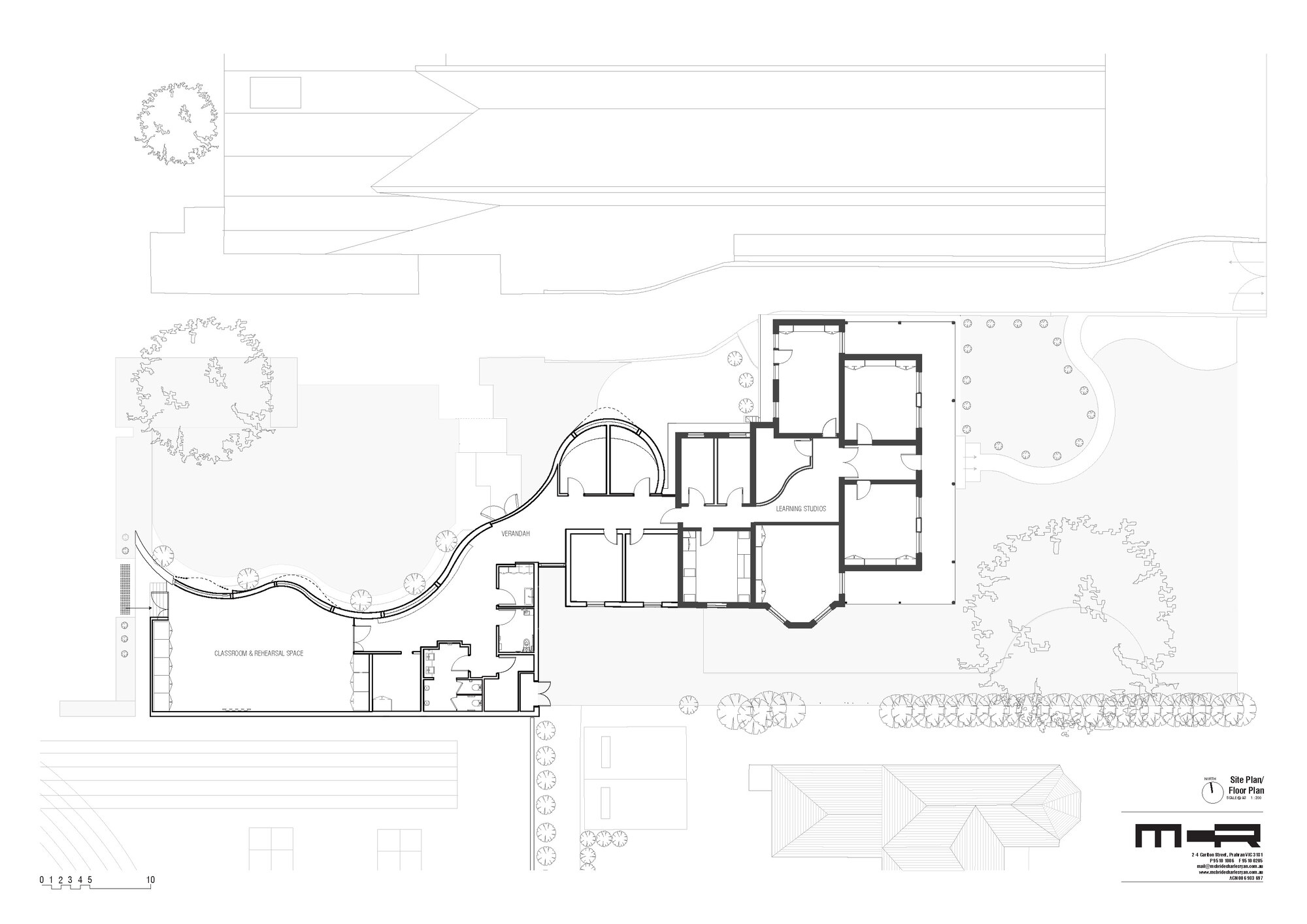 这三座建筑的结合带来了一加一大于二的效果。建筑的组合以及庭院这一第四元素的加入,给人一种一个小型社区的印象。新增加的音乐中心在调解2009年的建筑和维多利亚式房屋的形式感之间起到了作用。新建筑由不同大小的练习室组成,可以进行个人教学和集体练习。它还包括一个大教室,用于学习、教学,以及作为学生、家长和其他人的主要表演空间。