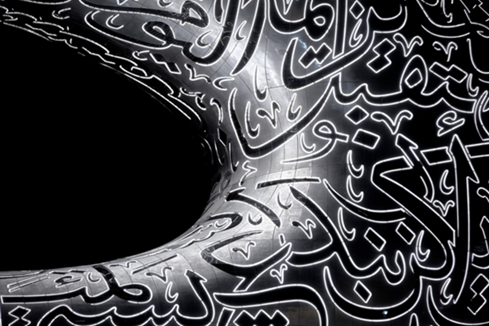 建筑的外部覆盖着窗户,这些窗户是迪拜统治者谢赫-穆罕默德(Sheikh Mohammed)用阿拉伯书法写的一首关于他对城市未来愿景的诗。为了创造所需的形式和独特的包层,同时以LEED白金的可持续性评级为目标,基拉建筑工作室和布罗-哈波德工程公司开发了新的参数化建模工具。