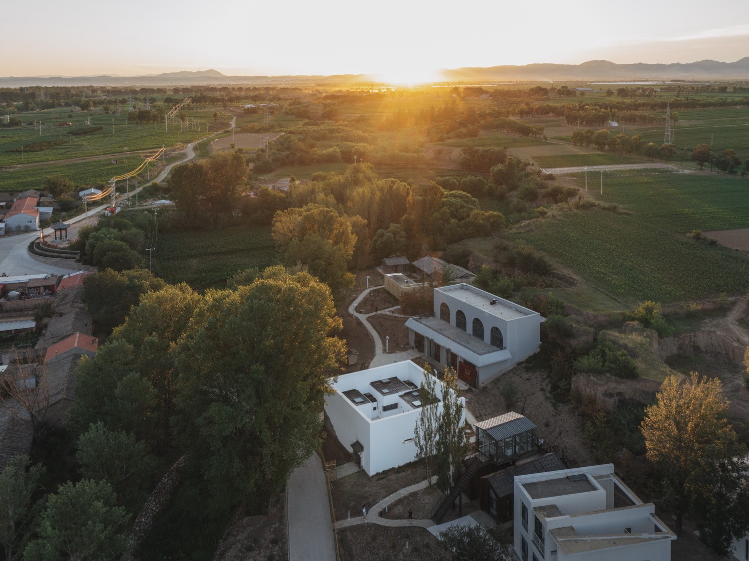 基于粗浅的人类学思考。我注意到在西窑头村以前的民居都是包围着连续的象征边界榷权的围墙。我的设计不过是在这个场地强化了这个传统类型。其实乡村是个熟人社会,即便家家户户之间有高墙也挡不住窥视和八卦。但作为接待外村人(陌生人)的民宿,陌生人的在地安全感有时不得不建立在封闭的环境里,并需要制造一种自保的体验。所以我把墙体升到7米,创造了一个完全独立的形象。这堵在本地人和外村人眼中解读意义可能不同的墙却可以同时为双方所接受而最后成为我塑造陌生人这个形象的手段。
