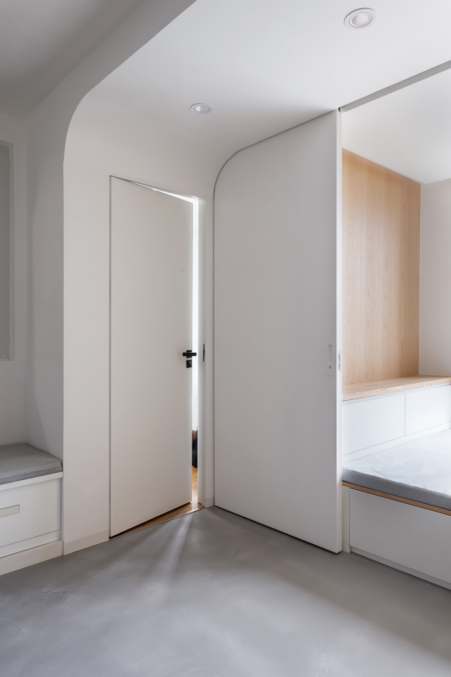 弧形元素整合空间形体,由私密空间向公共区域的延申,实现彼此之间互不打扰又相互联系。深化过程中,空间灵活性与实用性作为核心考量,赋予限制空间的意外惊喜。