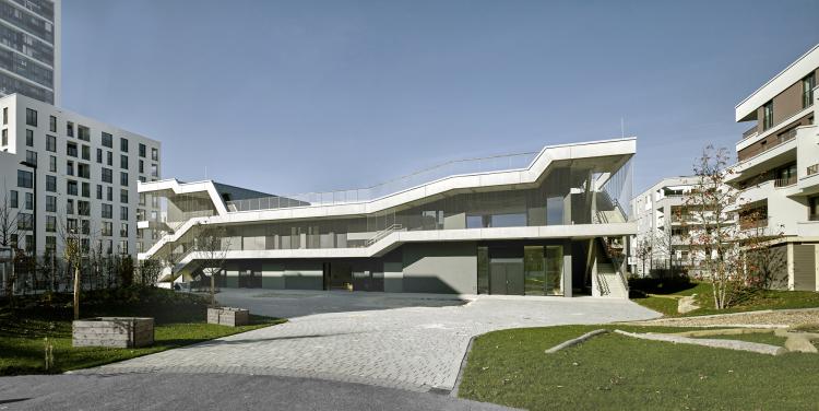 毗邻赫宁格公园和萨克森豪森区,项目规划的思路是在都市区建立一个立体的多层结构,以此来提供对应不同功能的不同空间——不论是学习还是玩耍,室内还是户外。