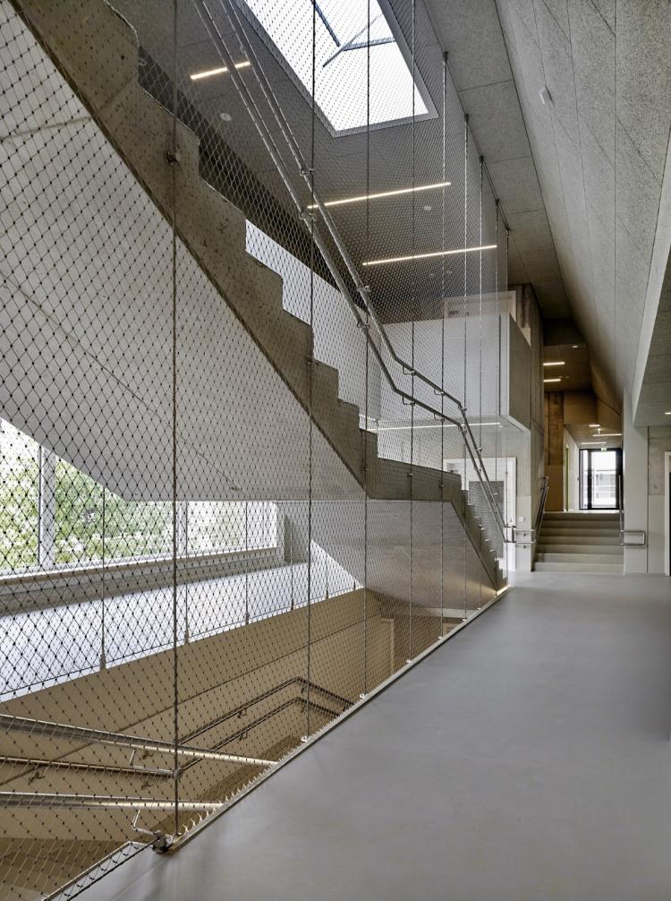 在室内,一个中央通道加上多个有遮盖的走廊鼓励孩子四处走动。这些走廊及与之相连的楼梯,均由清水混凝土作主要材质,形成了一种从室外到室内的自然过渡。这些空间上的过渡坐北朝南,面向一个大型花园。同时,突出的拱廊可以防止阳光直射,从而避免了夏季室内过热。这也让从室内到室外的动线免受风雨的困扰。