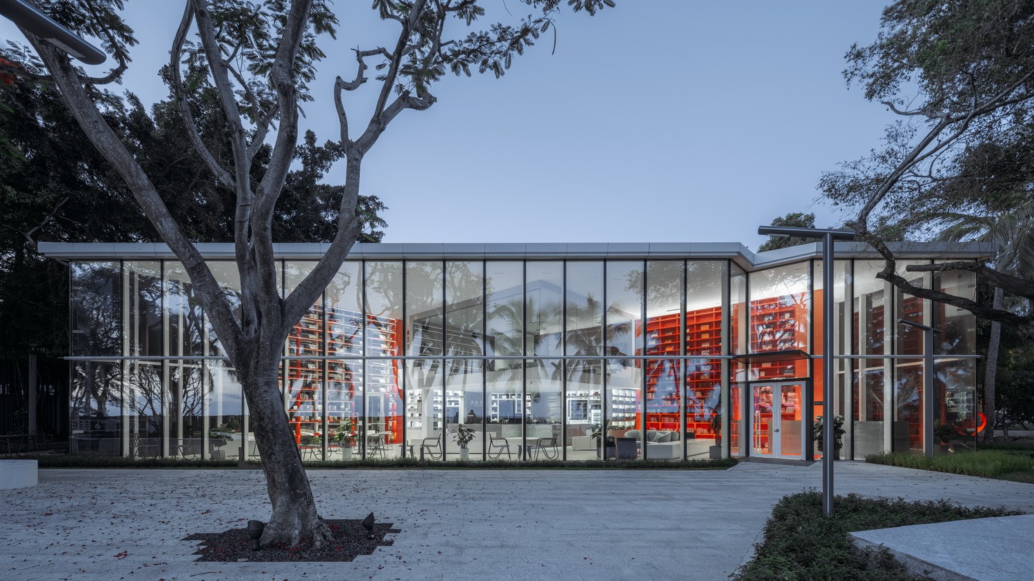 白天的书局会消失在反射着大海椰林的玻璃上而显得谦虚。可在书局内,我却得以以一种看似脆弱的安全保障下用冷静的态度审视一览无遗仿佛没有遮拦的大海。到了晚上,白天那个控制一切的大海会消失在夜色中,只有海面上随着波浪起伏的月色被破碎成斑驳的反光,一闪一闪地撩起了我内心各种情愫以及美好回忆而略略失神。可是当我走出书局回头看,这时的玻璃在书局辉煌的灯光中消失,红色的书架仿佛朝阳霞光照亮了整个海滩。人类那种挑战一切的雄心壮志和自豪感便不由得跃然而生。
