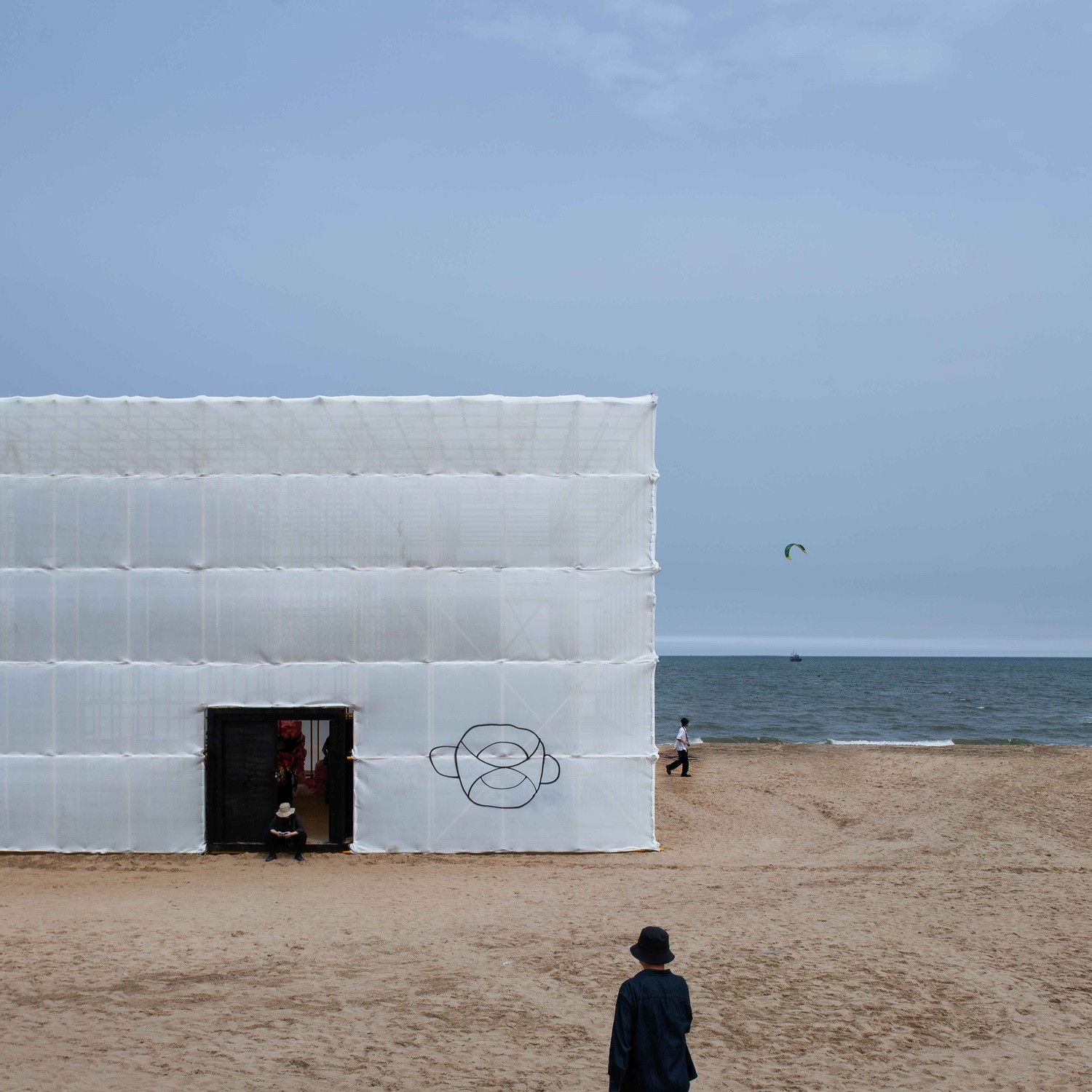 20天的时间内,人和物瞬间的聚集、瞬间的离散,这栋房子经历了建成与湮灭,临时的建筑已然成为永久的回忆;活动期间它有个好玩儿的名字,叫“晃神儿空间”。建筑拆除后沙滩回到了之前的样子,就像什么都没有发生过一样。