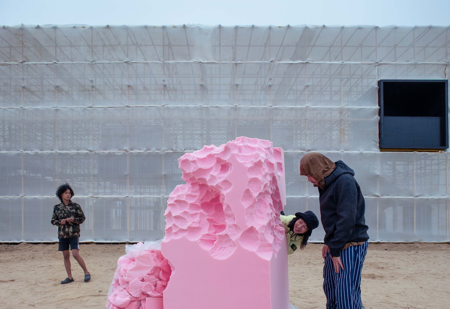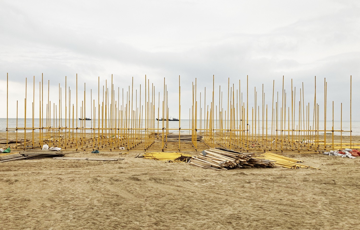 沙滩作为二者中间的缓冲地带,是人们亲近自然的绝佳位置,同时也是一道安全防御的边界和屏障。这种既连接又对峙的状态,也反应了人类与自然之间的复杂关系和情感,渴望亲近又要竖起坚固的保护壁垒。而这次沙滩上临时性的建筑,或许有机会可以触发别样的体会。