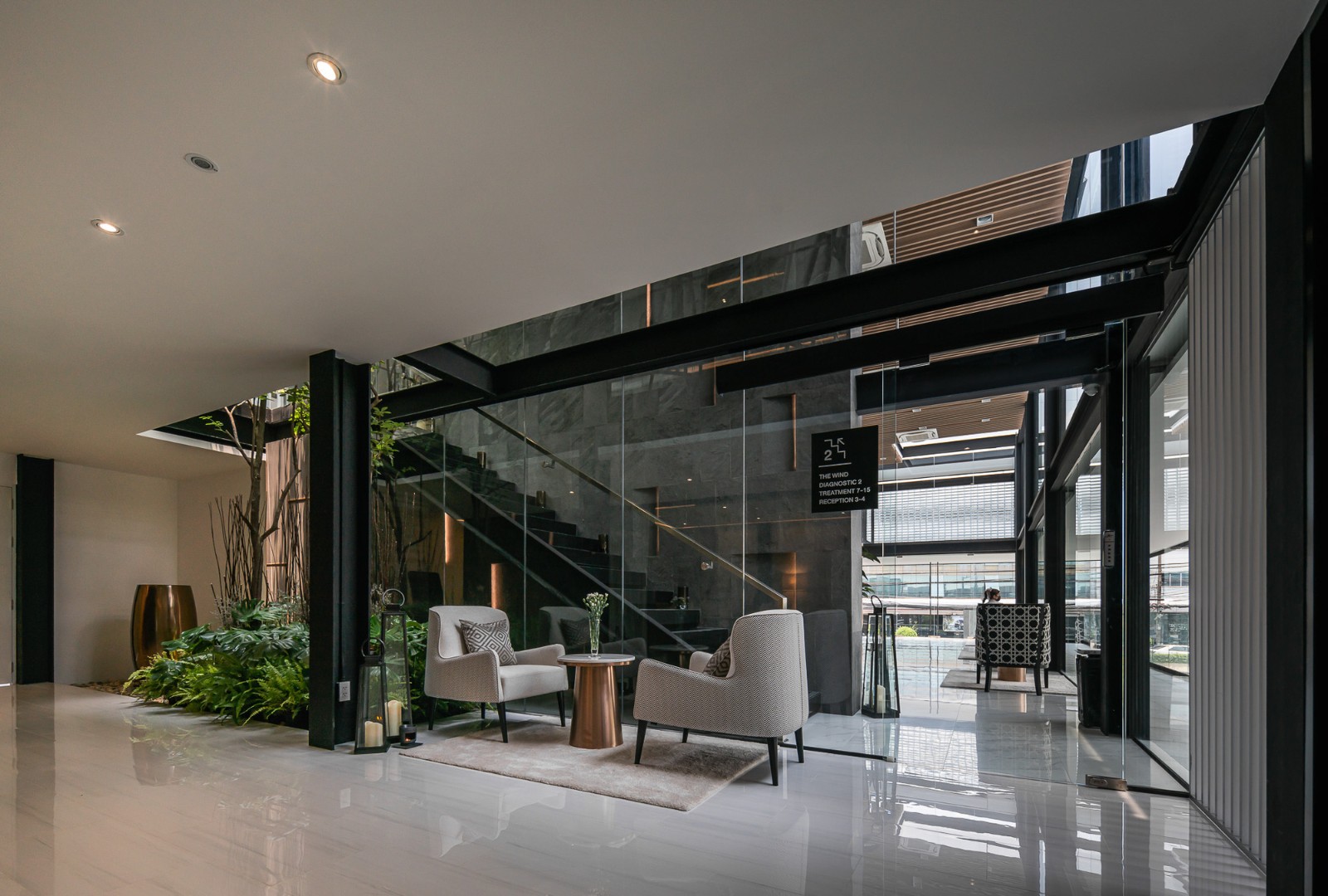 我们希望当他们进入这个空间、这个项目、树木和花园连接的空间时能够感到放松,使这个建筑内外都很出色,成为一个很好地满足客户和业主需求的新美容诊所。