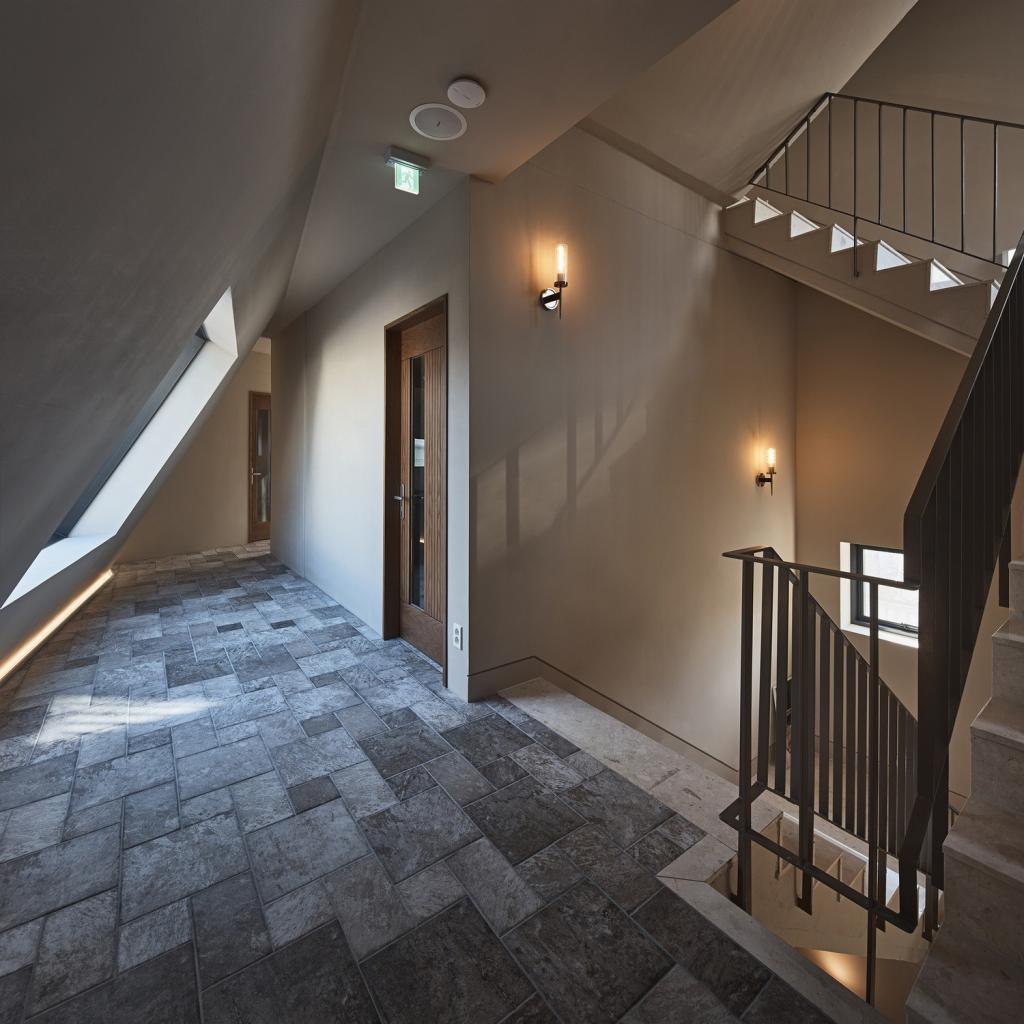 与用于产品展示和皮肤咨询的下层相比,用于个性化水疗护理服务的上层空间面积较小。地下层层高较高,可以用于举办各种活动和展览,而首层大厅同时具备咖啡厅和水疗中心门厅的功能。总的来说,建筑在垂直方向上从底层的公共空间逐渐过渡到上部的私人空间。