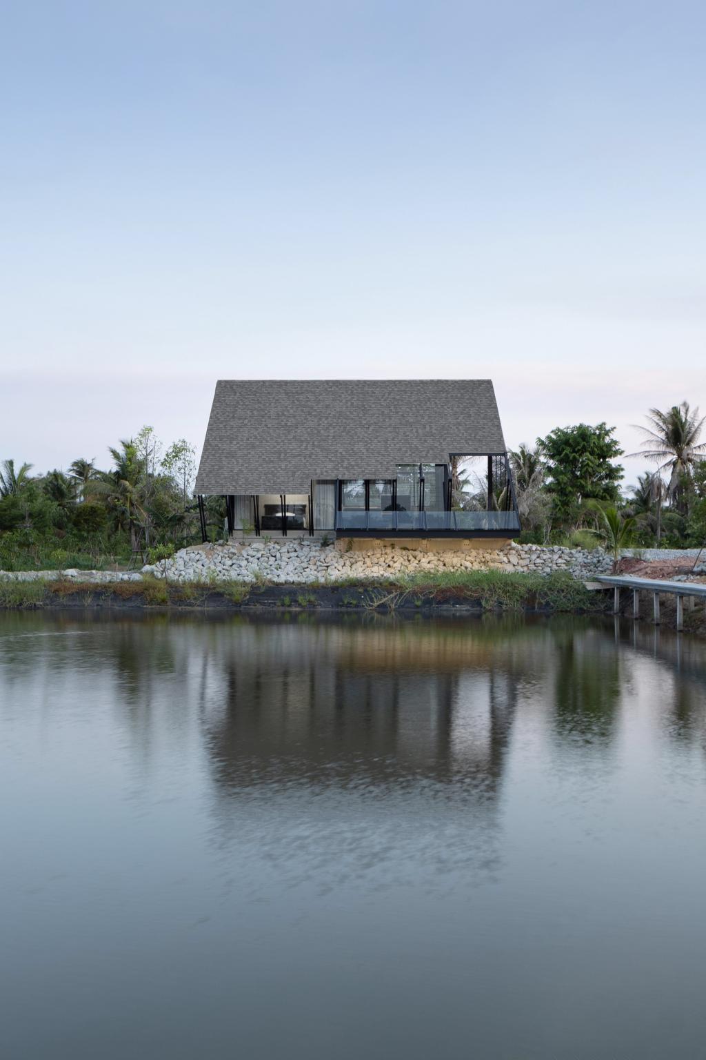 基地位于曼谷东侧一小时车程处的彩琼骚府(Chachoengsao),这里的郊区生活风貌和城市相近,有许多工厂和大海(泰国湾),所以也就不可避免的造成了土壤盐分过高的情况。项目所在的基址是一块带有人工池塘的平坦土地。