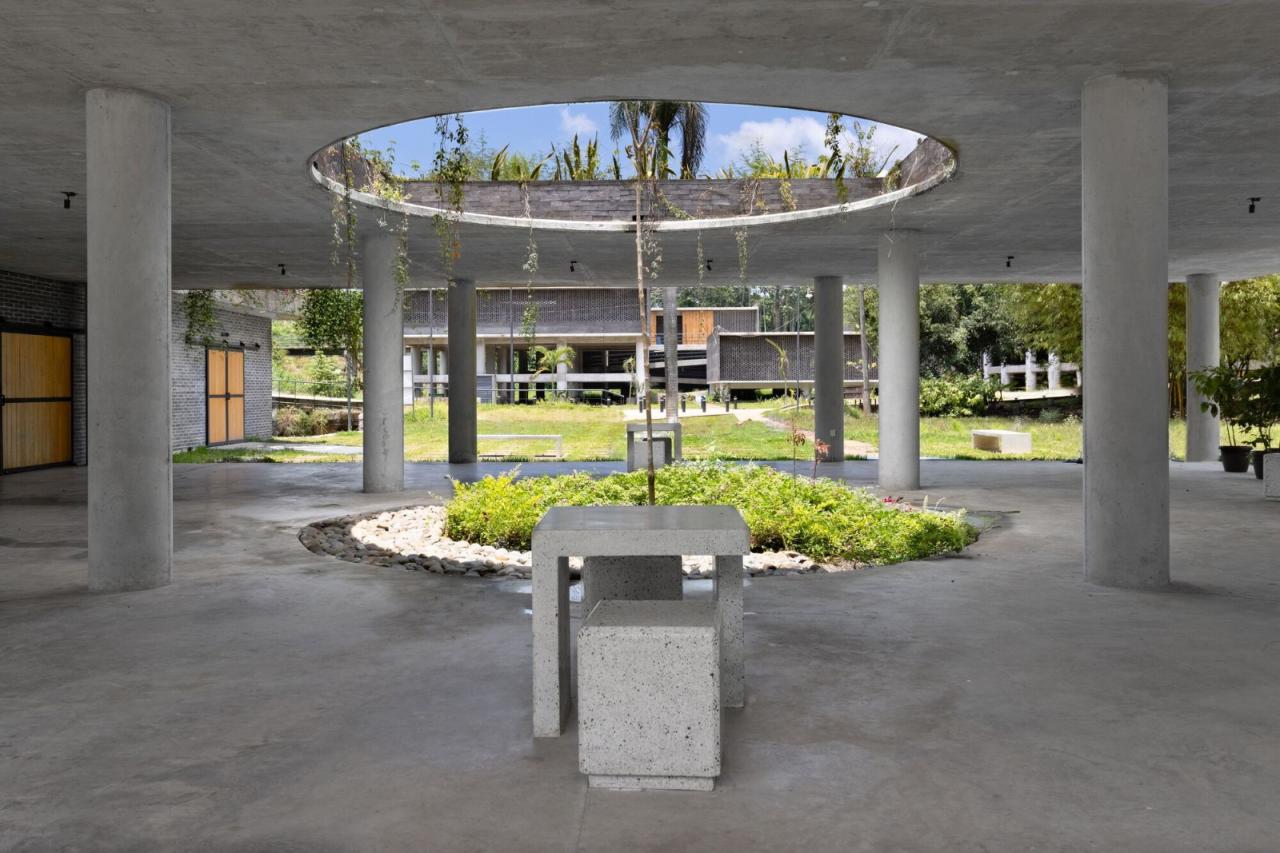 社会援助中心的主入口位于Avenida 8va Norte大道前。室外的广场空间可从庭院出入,一旁的台阶则通向“社会支持”建造模块的露台区域,可为用户提供舒适的环境以及举办室外文化活动的场所。除“社会支持”建造模块外的其他模块,都位于较低的北侧露台,借助支架与出入口相通。这一做法可促进雨水的自然渗透,并利用地面为北侧露台提供遮蔽,免受日晒雨淋。连接建造模块和入口的抬升式中央走道,可提供远眺和观测周围自然环境的绝佳站位。