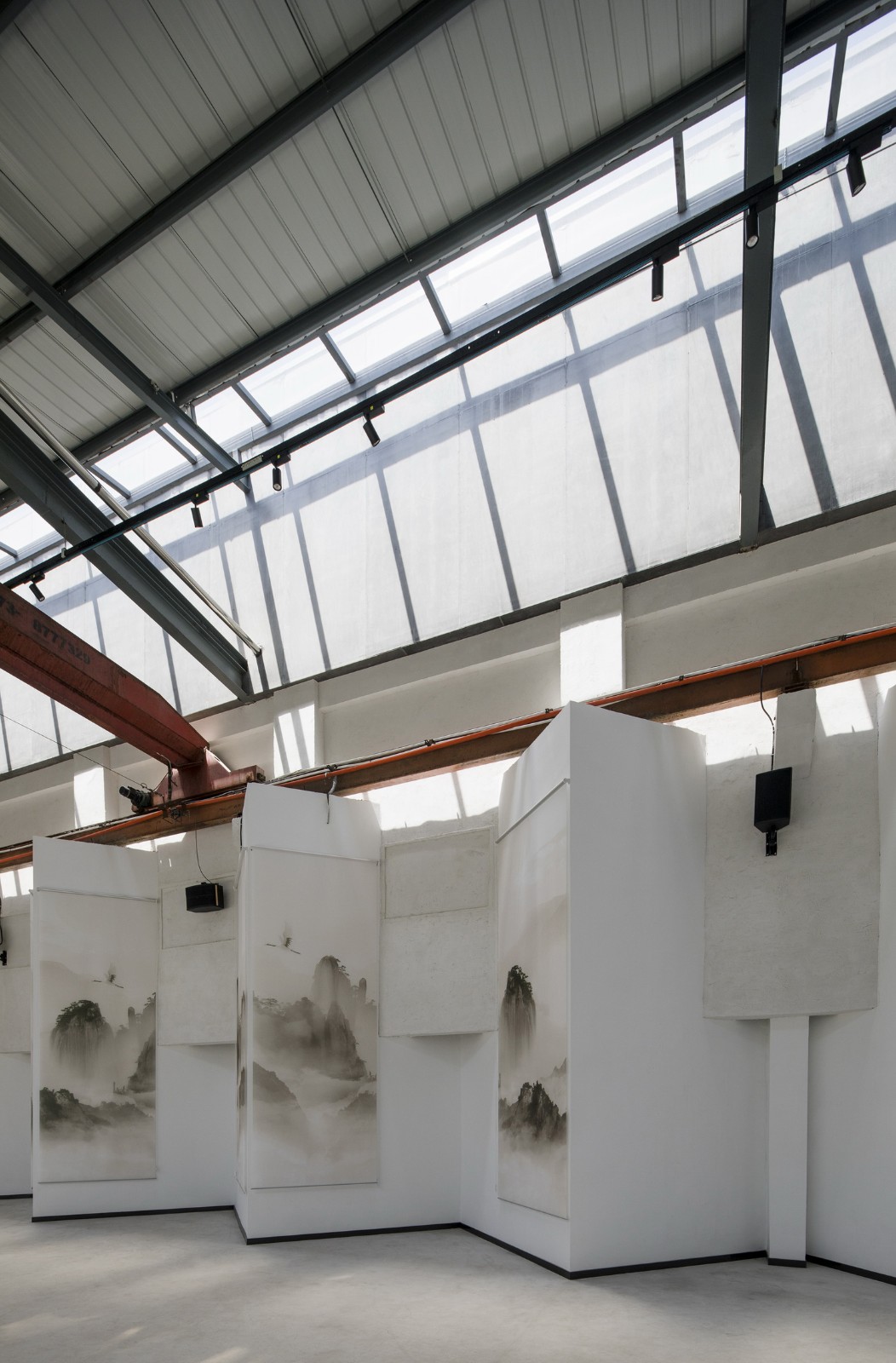 厂房区域两侧墙体植入两道折型墙体,以此来增加未来作为展厅的墙面展出空间。
