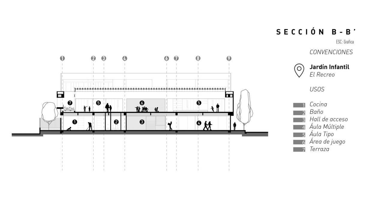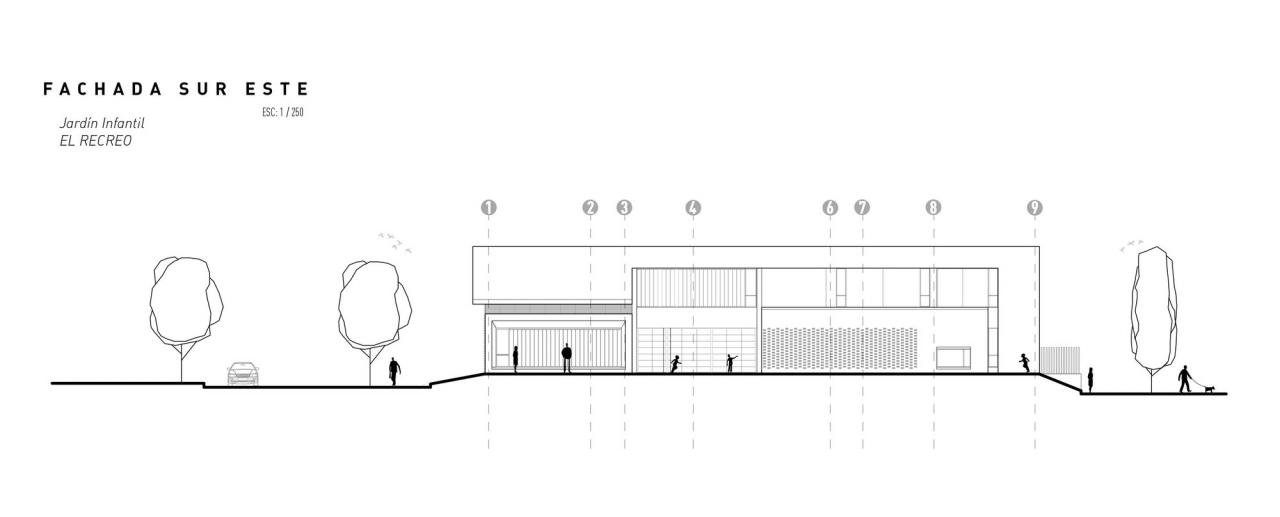 “玩乐时光”幼儿园力求以连续和慷慨的方式积极呼应城市文脉,为所在城市的结构做出贡献。该设计通过与户外区域和社会区域灵活的连接,促进不同规模的活动与合作教学,从而提升学习效果。
