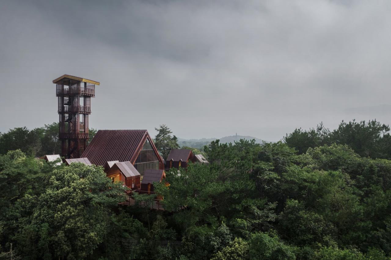 设计包含一座24米高的瞭望塔,一个多功能大厅,以及19个预制森林木屋。