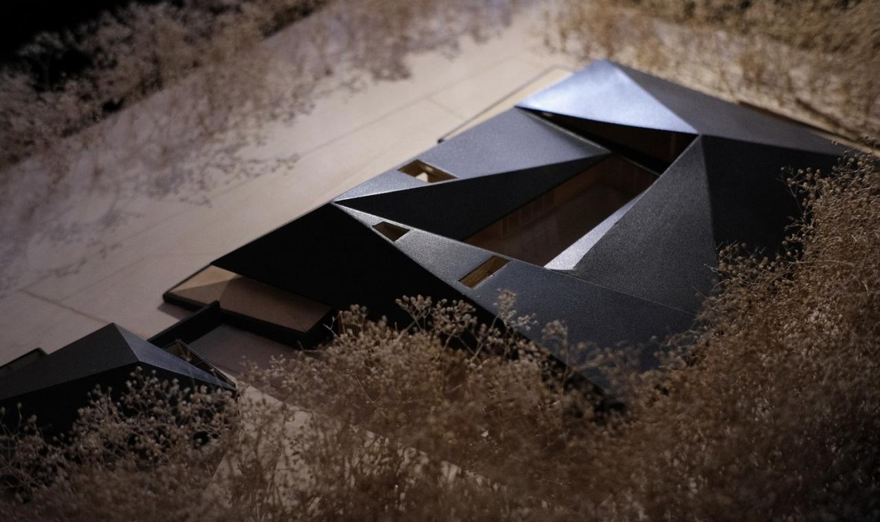 由此,逐渐升高并隐藏围墙的景观地台和交错折叠的屋面成为了组织空间的主体,它们连同后山一起层层退后并相互错位,以此来补足场地处山体的缺陷,并表现出了近、中、远景的层次,让建筑和环境更好地融合在一起。