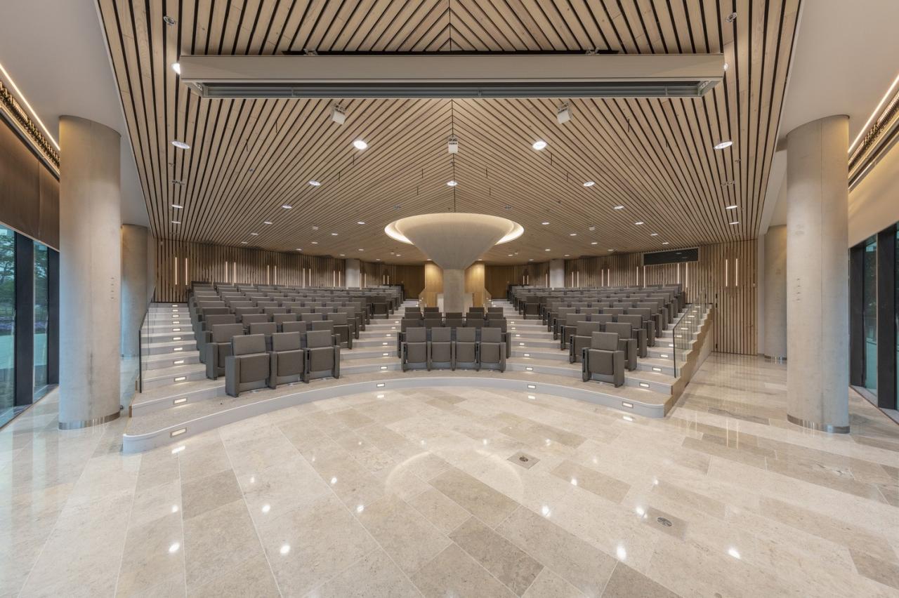 这座“绿色地标”中有四个“绿色广场”,这些开放空间拥有充足的日光、大型室内绿色花园和天然材料,包括木材和石材。最低两层的第一个广场包含餐厅、礼堂和会议室。从三楼开始,每个广场都与两层办公空间接壤。这使得员工在喝咖啡的休息时间能够轻松且非正式地开会或聊天,广场由此成为了部门之间连接的纽带,这将促进在新大楼工作的500名员工之间的协作和知识交流。