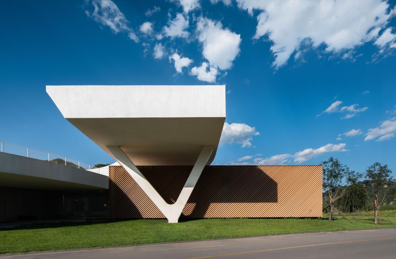 顺应坡道攀升,建筑在“内与外”之间保持一种暧昧,约束出观看风景与展品的多维视角,此为第二重惊喜;