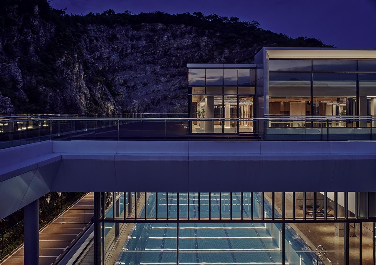 在这方空间中,自然是设计的主角——在山水的起伏回环之间,设计巧妙利用景致风光,尽最大可能打通室内外的界限——仿佛建筑从矿坑中自然生发出一般,虽由人作,宛自天然。