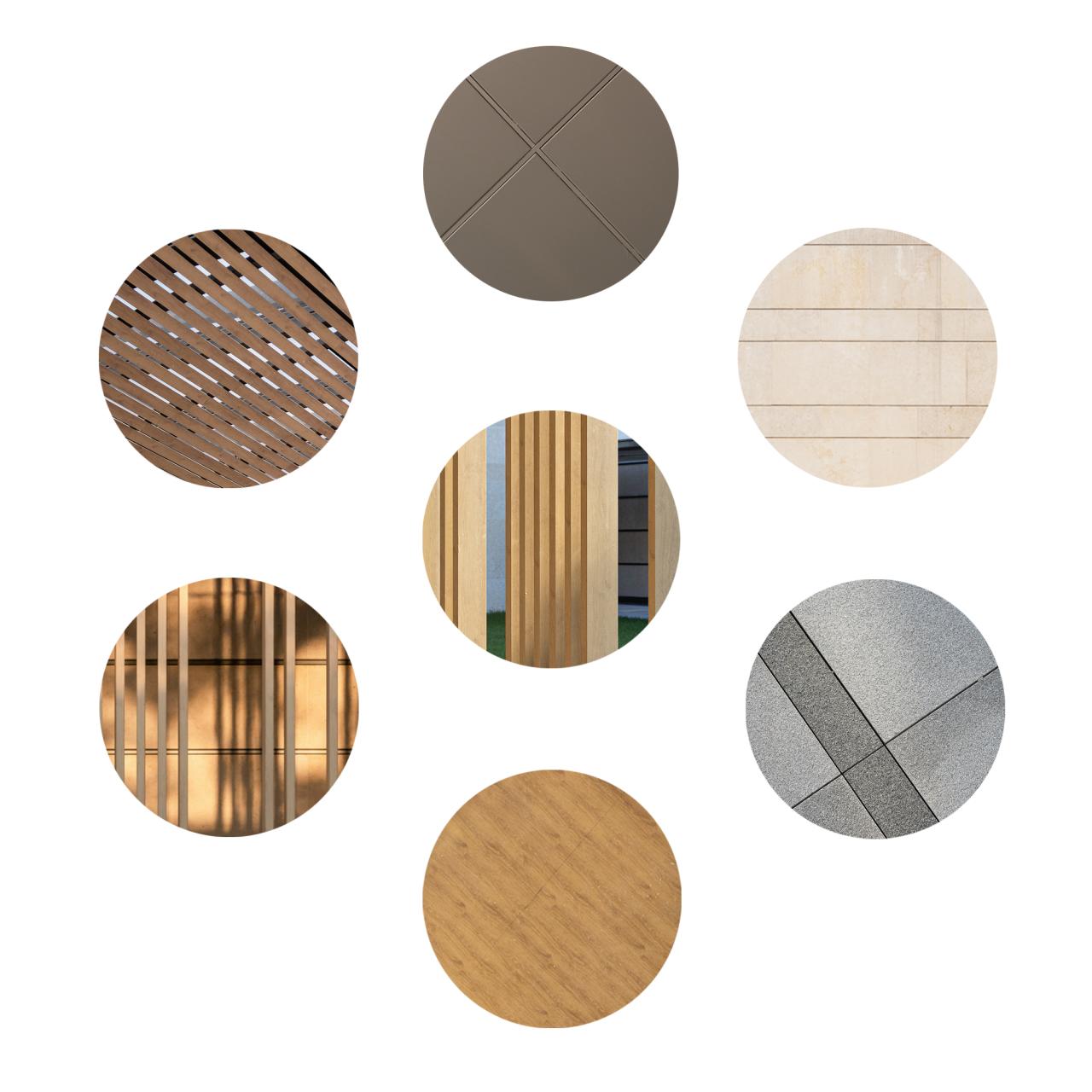 江南墅则试图在开发成本框架之下、结合滨海城市的在地特征,塑造出独属于自身的审美情境。建筑师希望社区“现代”而“轻松”,具有一种“温暖”的“度假感”。基于此,设计没有简单沿用高端项目中常见的冷灰调子,而是在现代主义的审美框架下融入更为温暖、地域化的材料和做法。
