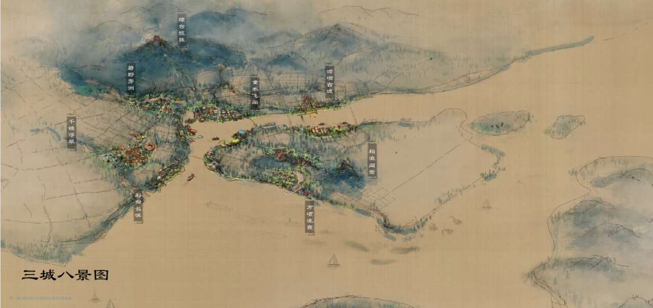 依托紧凑宜居的布局模式,以山海景观格局为人居环境基础,塑造湾心岸城、川下水城、海上花城三个差异化片区,打造富含传统意蕴的海城八景。
