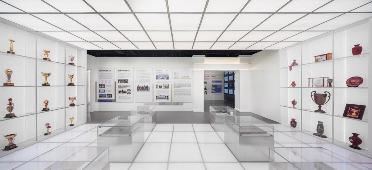 从仿老校园的教学楼——安德堂的入口进入校史馆,线性的流线,串起了不同大小、体验与设计风格的空间,也串起了从清朝、民国,到解放、改革开放、新时期,以至于面向未来的不同历史阶段中的汇文。每个空间代表着不同的时间,随着时间的流淌,观者也可以一同感受汇文的成长与变化。