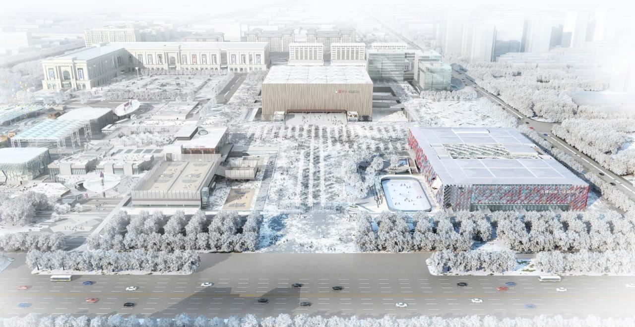 五棵松冰上运动中心是2022年北京冬奥会的冰球训练馆,项目紧邻长安街,位于北京五棵松文化体育中心的东南角,与西侧的篮球广场围绕着五棵松篮球馆形成左右对称布局。