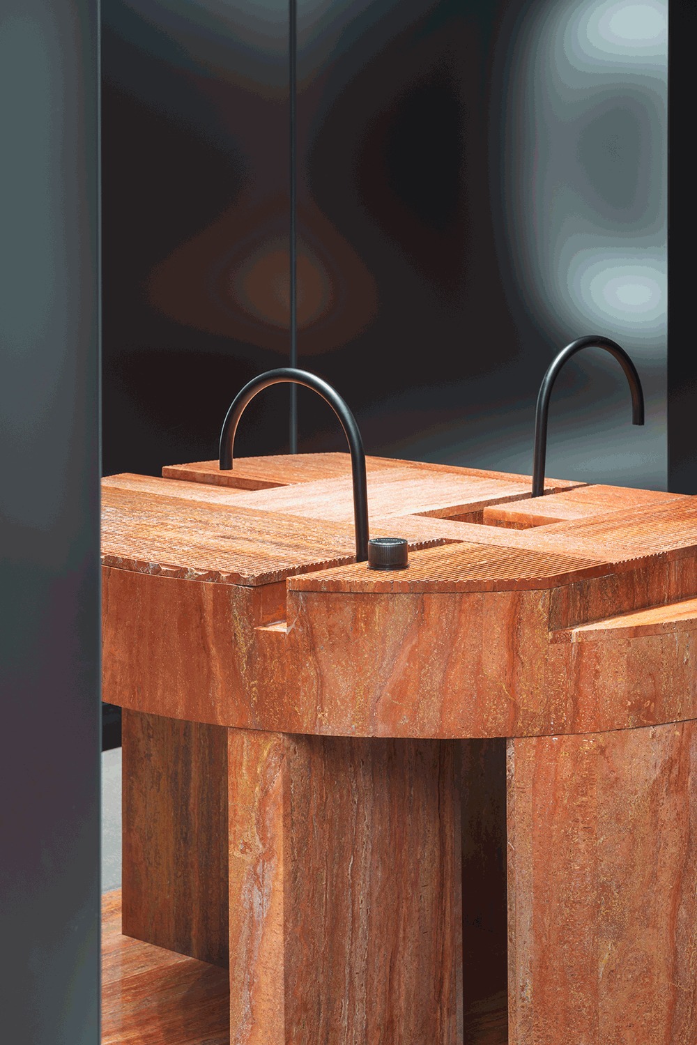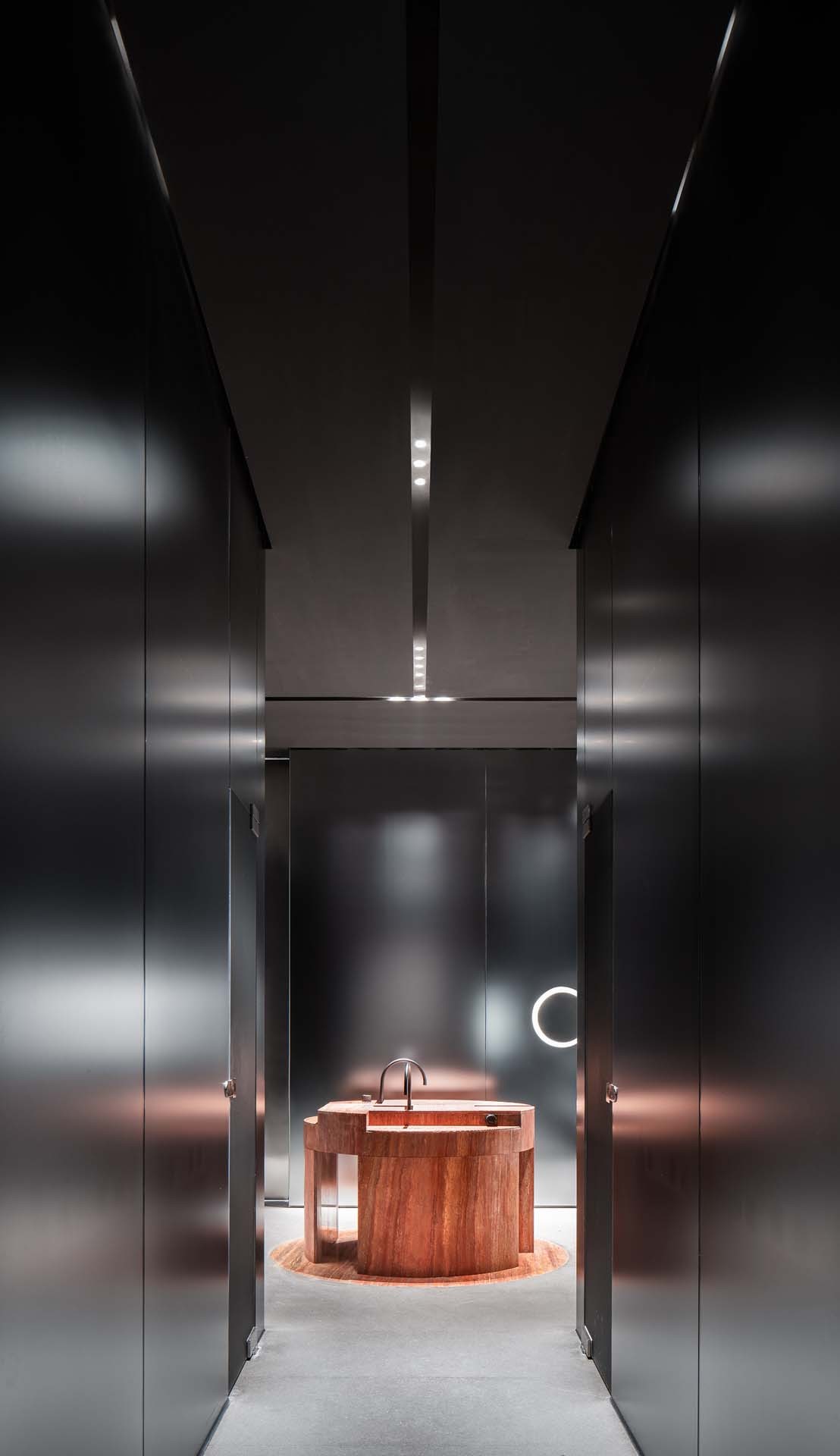洽谈区间的产品则在试图探讨传统家具功能中‘桌’与‘几’的中间地带,预埋滑轨高矮台设计使不同角色的对话有着更灵活的适应场景。而精细化的石材工艺亦见功力。大型自由吧台用以打破服务侍者与用户间的边界感,并通过强功能的整合来形成一组开放式的工作区域。在一个强调多元化用户的背景中,自由感与秩序感是家具设计中被微妙把控的分寸。