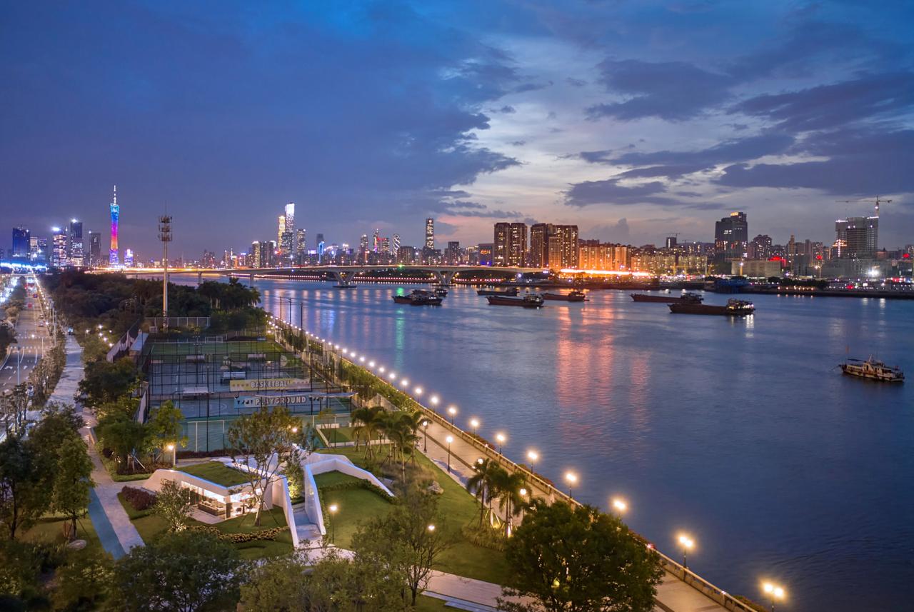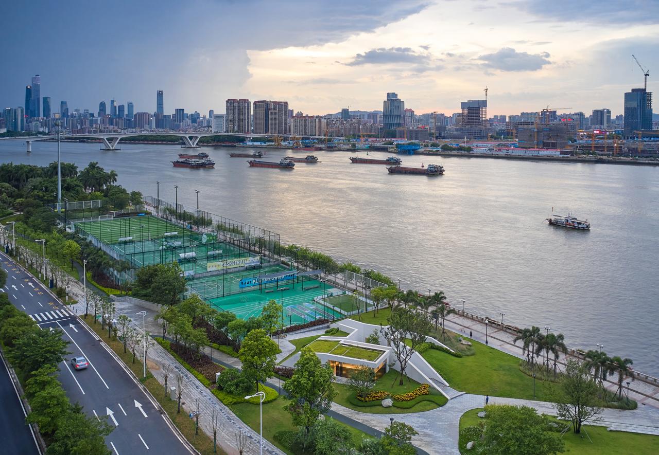 △配套公共服务空间与体育公园面朝珠江,背靠保利大厦,洲际酒店,高端住宅等密集的城市建筑群。