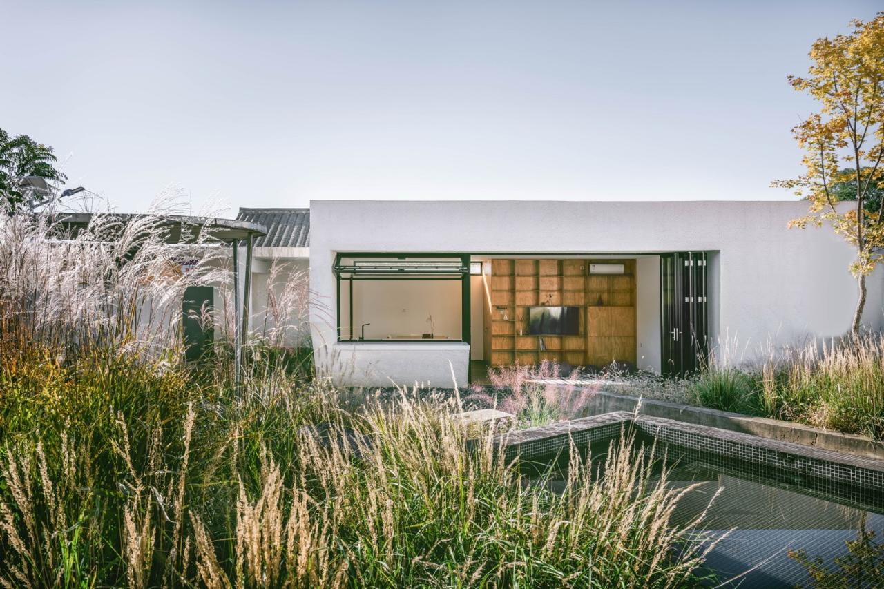 我们希望建筑能够为人们观赏山景提供舒适的条件,而非通过制造奇观式的“凸出”物体让自然景色沦为陪衬。这一立场决定了整个院落中的建筑都呈现素色、且建筑节点与做法都尽可能低调。唯一鲜艳夺目的是花园中葱郁茂盛的植物。院子仿佛原本就存在于此,建筑师的工作只是前来做了清理与恢复。