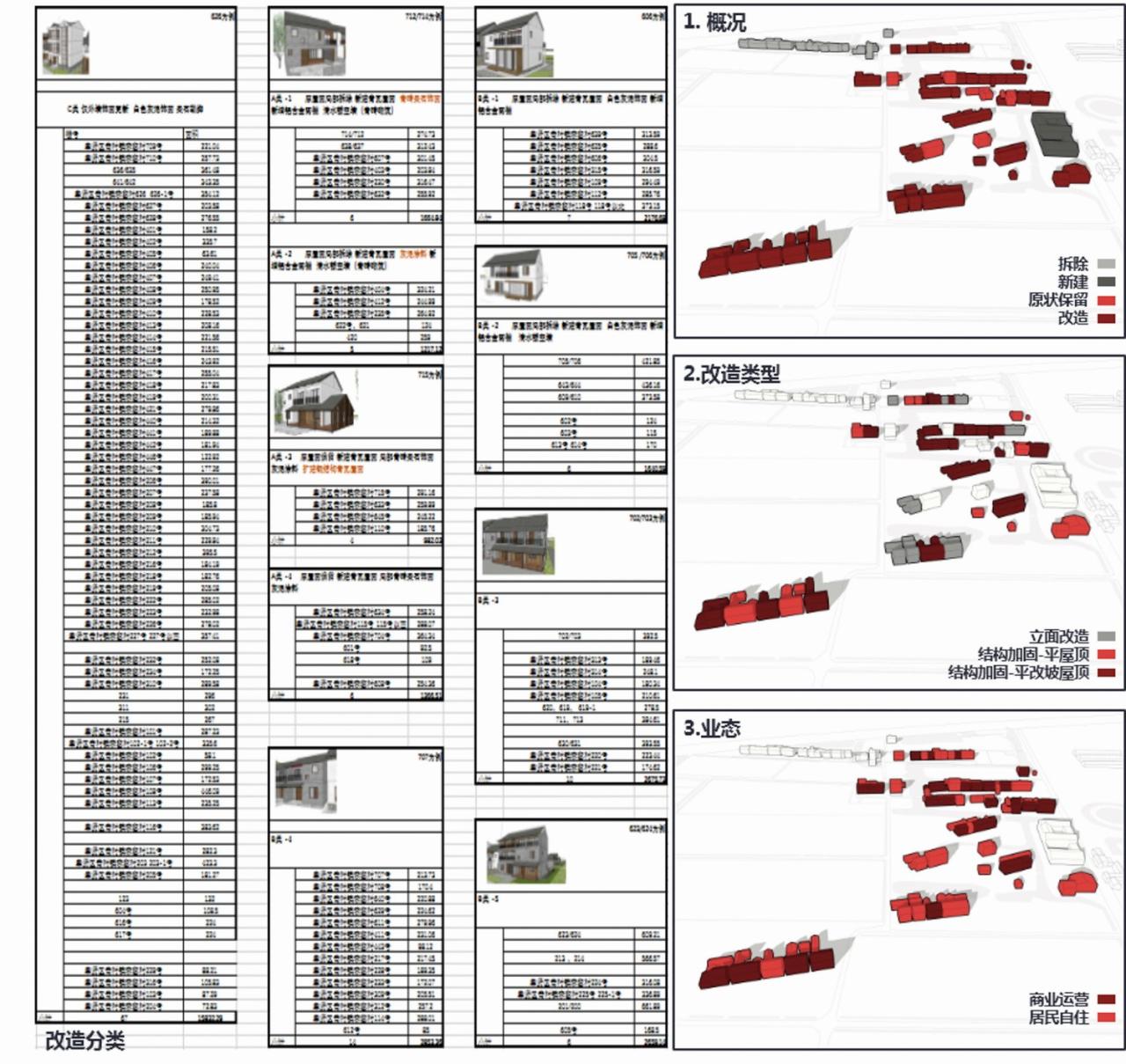 有了示范样板的信心,接下来便开始了大规模的方案设计,分配原始资料和研究的基本模块到不同的工作小组,每个工作小组根据各自组团的功能和民房的实际现状,选用不同的模块进行组合拼装,包括结构加固方式,屋顶形式,门窗洞口设计等等。同时每个单体都需要放置整体基地中考虑其协调性,最后确认每个组团的完整性。与此同时,也在不停的复核造价,确保整个项目的可行性。