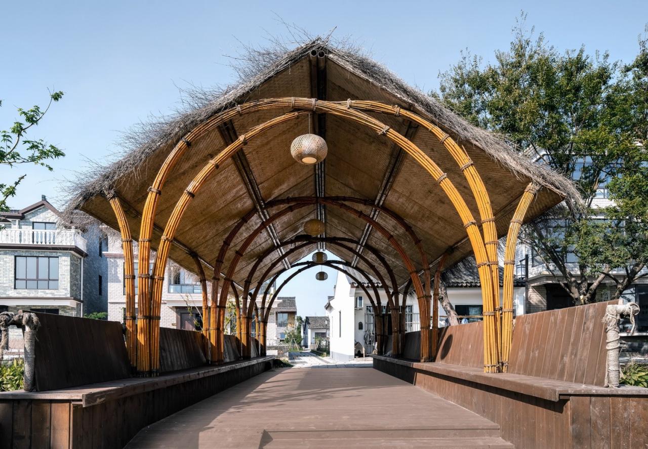 在整体的景观方案上,团队通过因地制宜的设计,回应自然而然的传统村落的肌理,通过对空间的重新梳理,对场景进行了场所植入、柔化与过渡。在对现有的资源进行规划整合后,团队从河道、农田、建筑场地出发,重塑一个原生的、自然的“河+田+民宿”的乡村景观格局,将失去活力的空间通过“桥体”连接,同时依托产业类型而增加的配套服务点也为村民带来了参与建设与运营的机会。