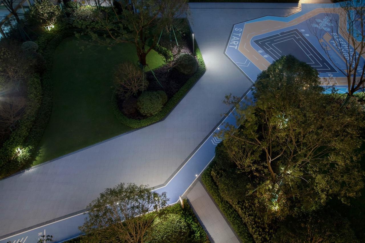 室外打造的夜光跑道满足日夜全天候运动需求,萌宠乐园则是为特殊“家人”配置的专属健身场所。