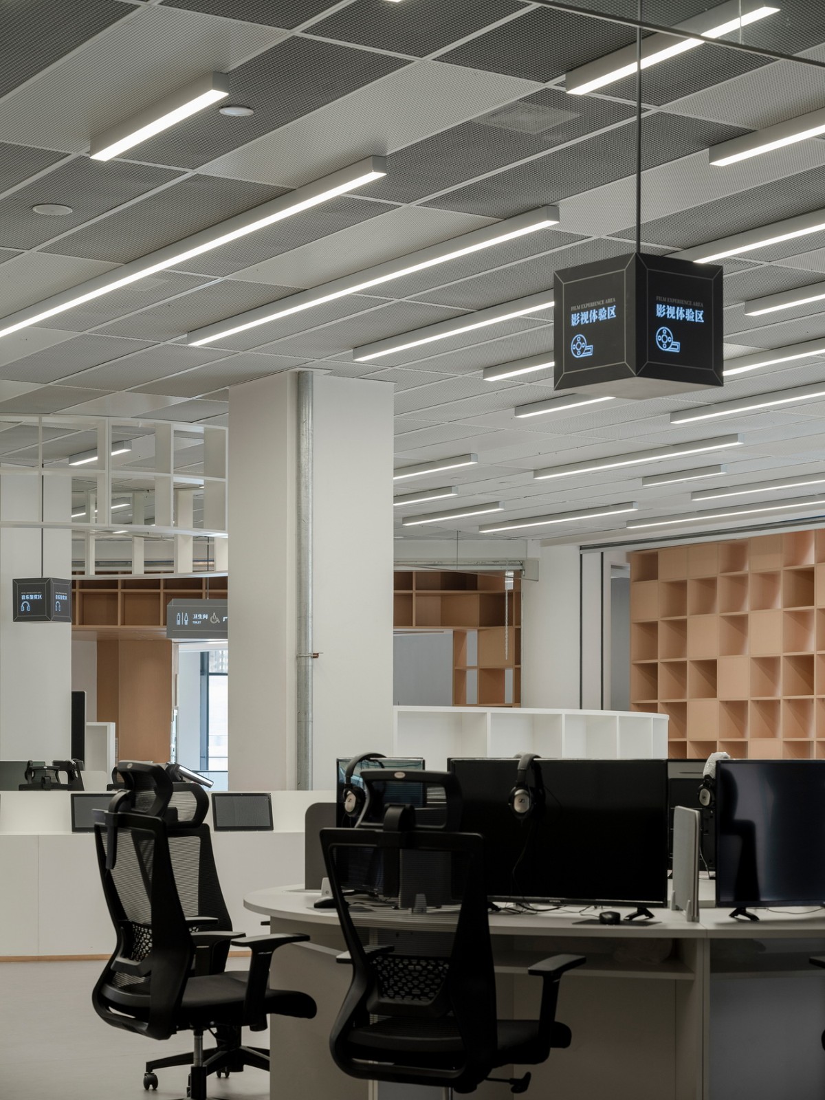 青少年阅读区作为高频使用区域设置了多元的艺术体验。身心疲惫时,可以进入多维影视区或者音乐小屋,感受独处的自在时光。