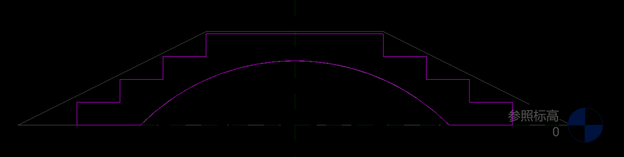 第一步,先用“拉伸”命令绘制这题拱桥的承重部分,在通过“镜像”命令绘制出另一半。