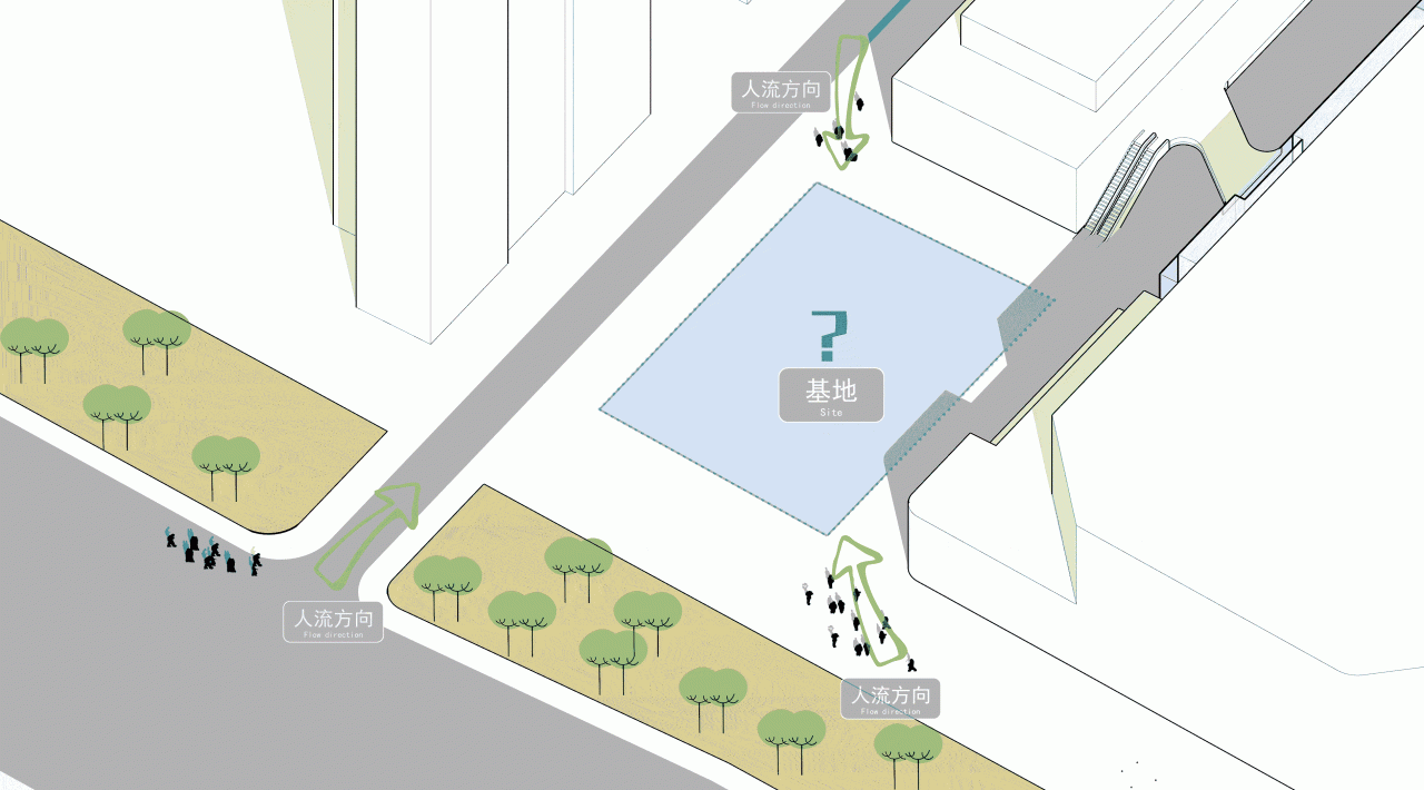 本案处于如东体育中心与住宅区高楼之间,城市界面较好,后期将作为商业,承载着展示整体商业街区格调的功能,采用别具一格的设计手法着重打造,景观亦经过精心设计配合主题。