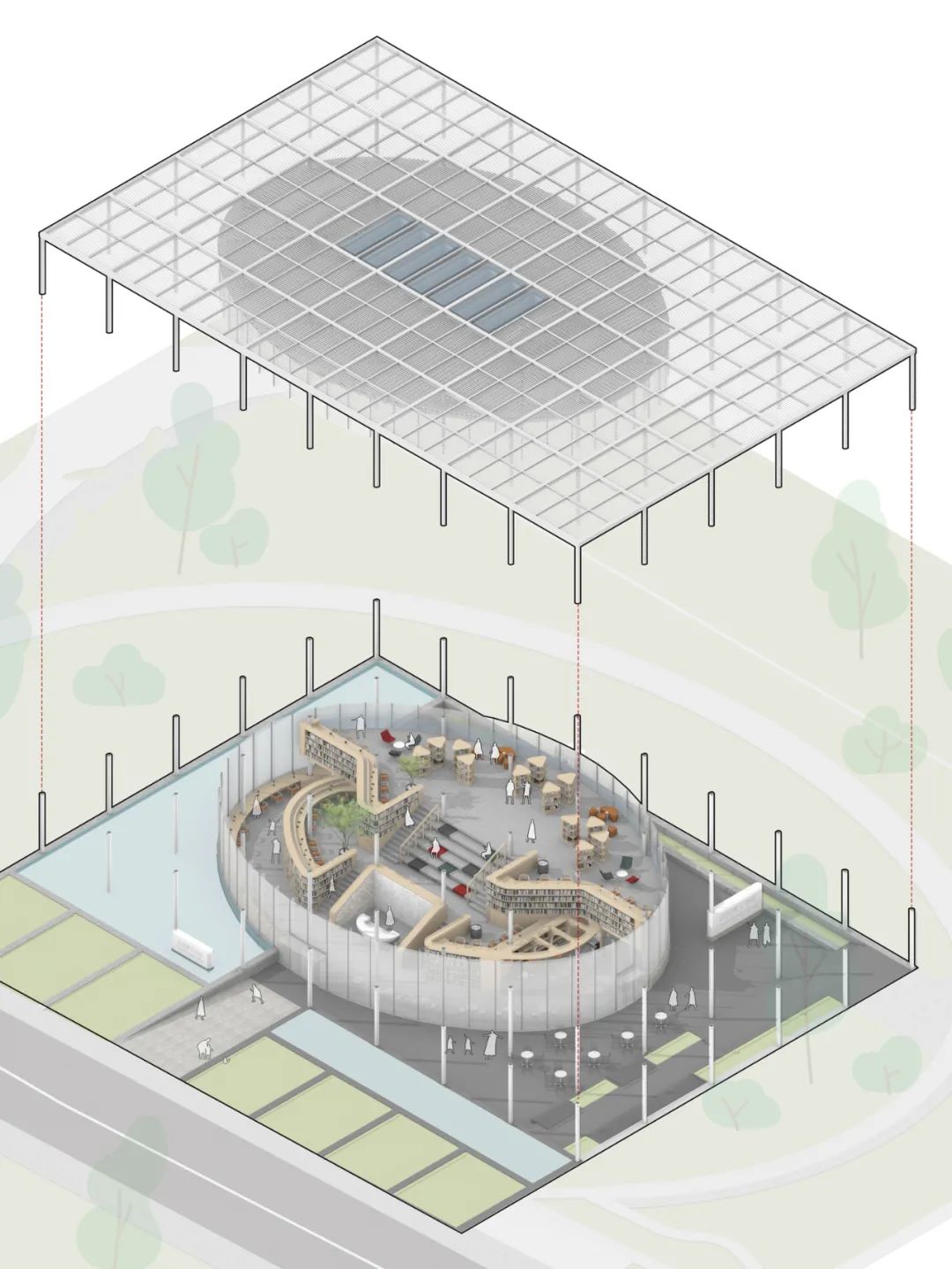 破圈,环境友好的文化庇护场所从设计意图上讲,云幔书屋打破了传统图书馆封闭的知识壁垒形象,追求建筑外围护结构的透明性与无物感,在满足物理舒适性的前提下,将室内场景曝露于环境之中,营造在自然中阅读的轻松与趣味。