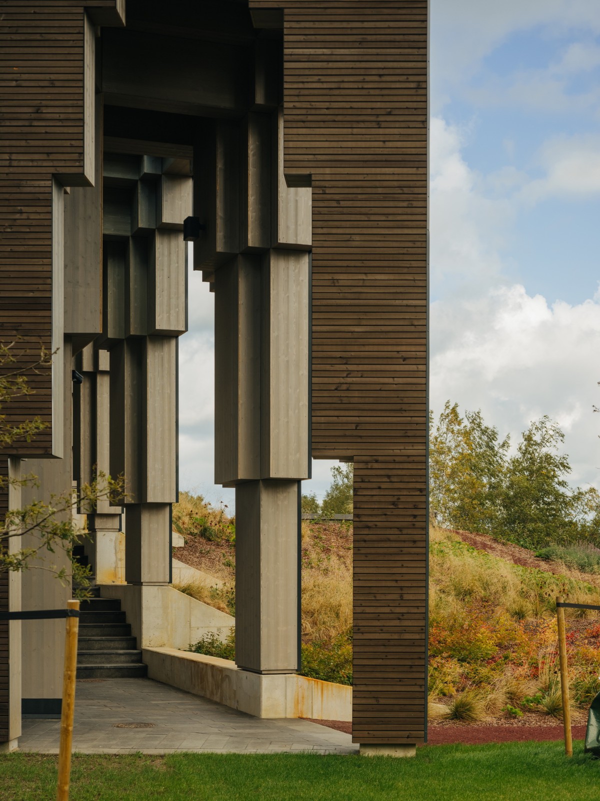 一方面,古朴的有顶拱廊被刻入简洁的三角体量,使建筑在当地城市环境中拥有突出的行政地位,但同时也作为公园里的公共庇护所,为内部空间提供防晒。