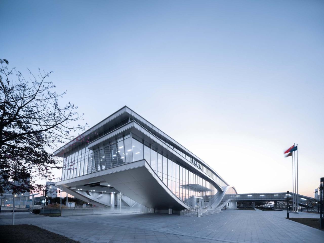 轻盈通透,和谐共存灵动的流动曲线不仅限于造型,还体现在功能布局,主体中央为主要联检区域,办公及交通空间则结合建筑的曲线坡道造型结构分布在南北两侧。两端通高大厅的布置方式,使原本层高较为局促的公共空间得到改善。沿街与沿江的立面两侧上分布的曲线作为受力结构的同时,也结合设置了人行扶梯、疏散坡道等竖向交通疏散系统,使立面元素与使用功能之间得到了充分结合。市民在坡道和平台享受到景观的同时,也不会对室内视野造成影响。