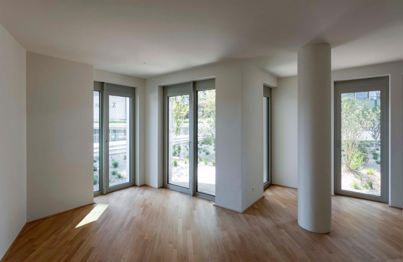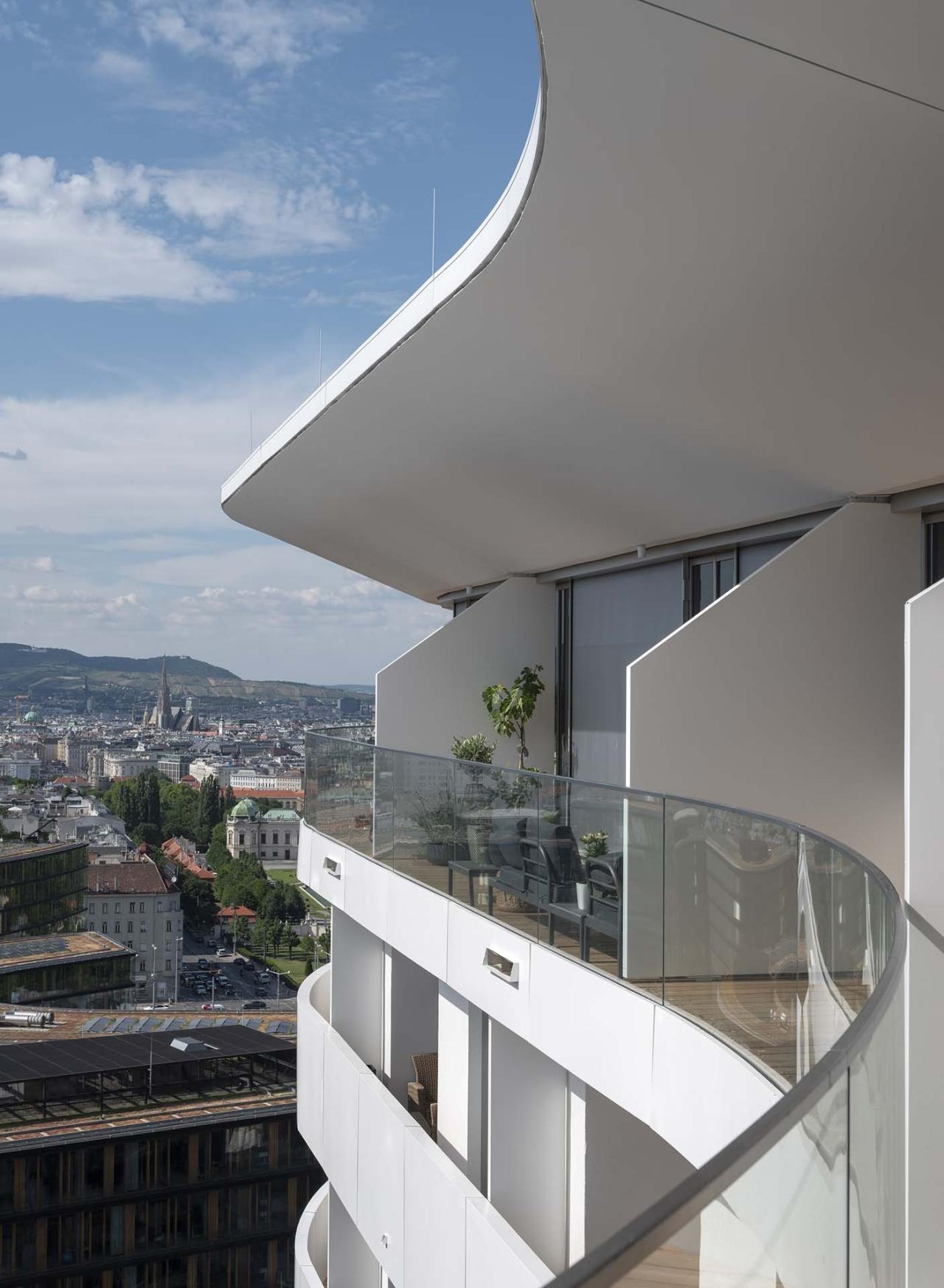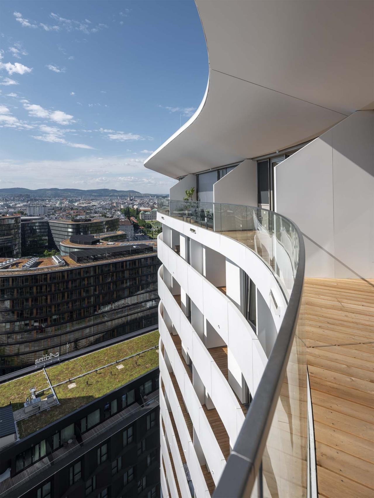 六种不同类型的公寓都配有天花板冷却系统及地暖系统,所有公寓单元都拥有独立的阳台或凉廊,从而为每一位住户都打造了高质量的户外生活区域,让他们可以自如地将维也纳迷人的景色尽收眼底。