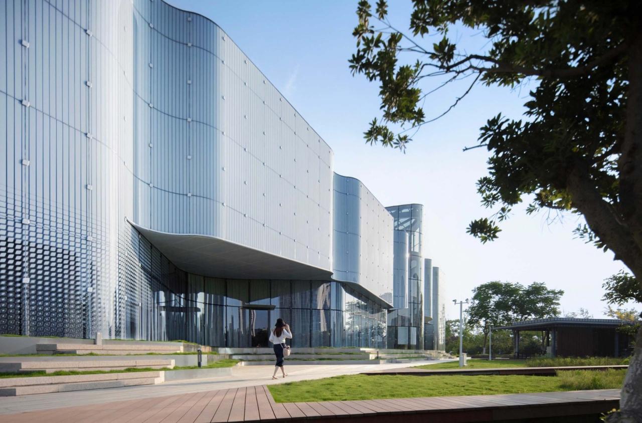 设计理念:因蝶起源,与蝶共生设计的原初概念围绕“蝶”展开,从馆内藏品中古人对蝴蝶形态的提炼形成创作灵感,以“蝶形三角”作为设计原型,造型和布局中均采用了隐喻蝶翼的倒角三角形作为母题。同时,以参数化渐变的彩釉幕墙表皮,再现昆虫翅膀般轻盈通透、细腻优雅的羽化质感。