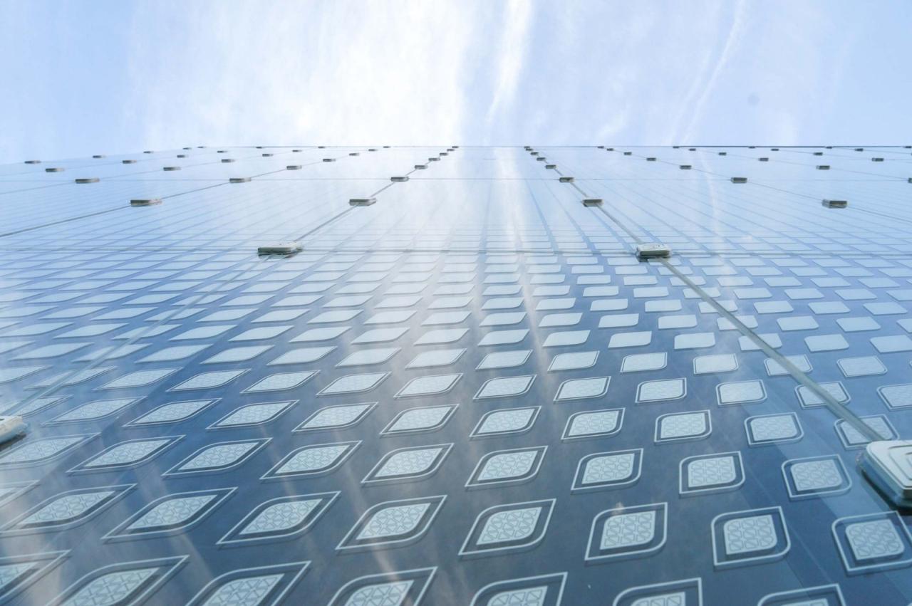 立面的白色彩釉玻璃构建出一种柔和消隐的氛围,形成有节奏的序列语言,与表皮单元的渐变控制形成交错的编织,好似羽翼般轻盈。通过精益的参数化设计把控,将幕墙构件与划分消解在彩釉图案中,实现纯净的立面效果。