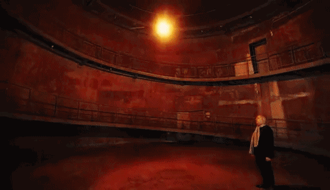 心室是一个圆形的空间,室内圆心处悬挂一盏闪烁的白炽灯,灯光闪烁的频率正是同时播放的心跳频率。上图为波尔坦斯基在上海当代艺术博物馆创作的心跳装置,播放的正是波尔坦斯基自己的心跳。