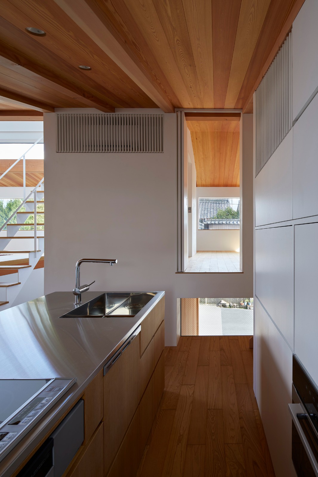 项目位于日本京都的下鸭,地处鸭川西侧,向东可望见比睿山。基地周边是由传统联排别墅和被围墙和树篱围绕的宽敞豪宅组成的混合环境;而近年的高效土地使用需求还使该地区出现了重建的三层建筑。由此,项目前提旨在应对高水平的土地利用需求和更新之中、具有悠久历史的景观环境。